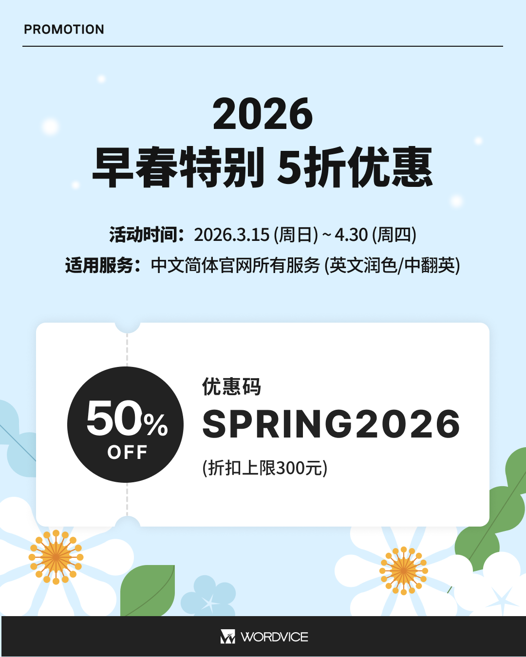Wordvice 特献“开学季”好礼——英文润色 / 中翻英服务限时5折,助力您的学术写作!