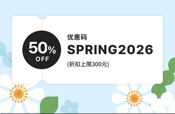 1. 记住优惠码:SPRING2026