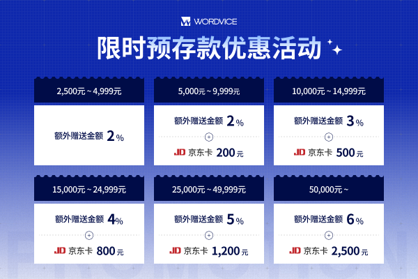以往最低预存金额为 5,000 元,现在只要 2,500 元起存,即可立即享受: